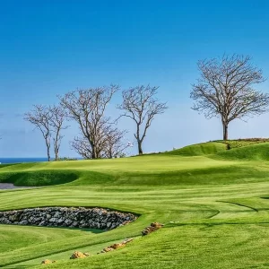 Strategic bunkers and cascading water features peppered throughout the course redefine golf, harmoniously merging challenge and beauty.