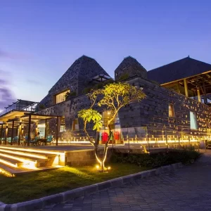 The clubhouse at Bukit Pandawa Golf & Country Club draws inspiration from Bali’s grand temples, an architectural marvel seamlessly blending modern amenities with Balinese tradition.